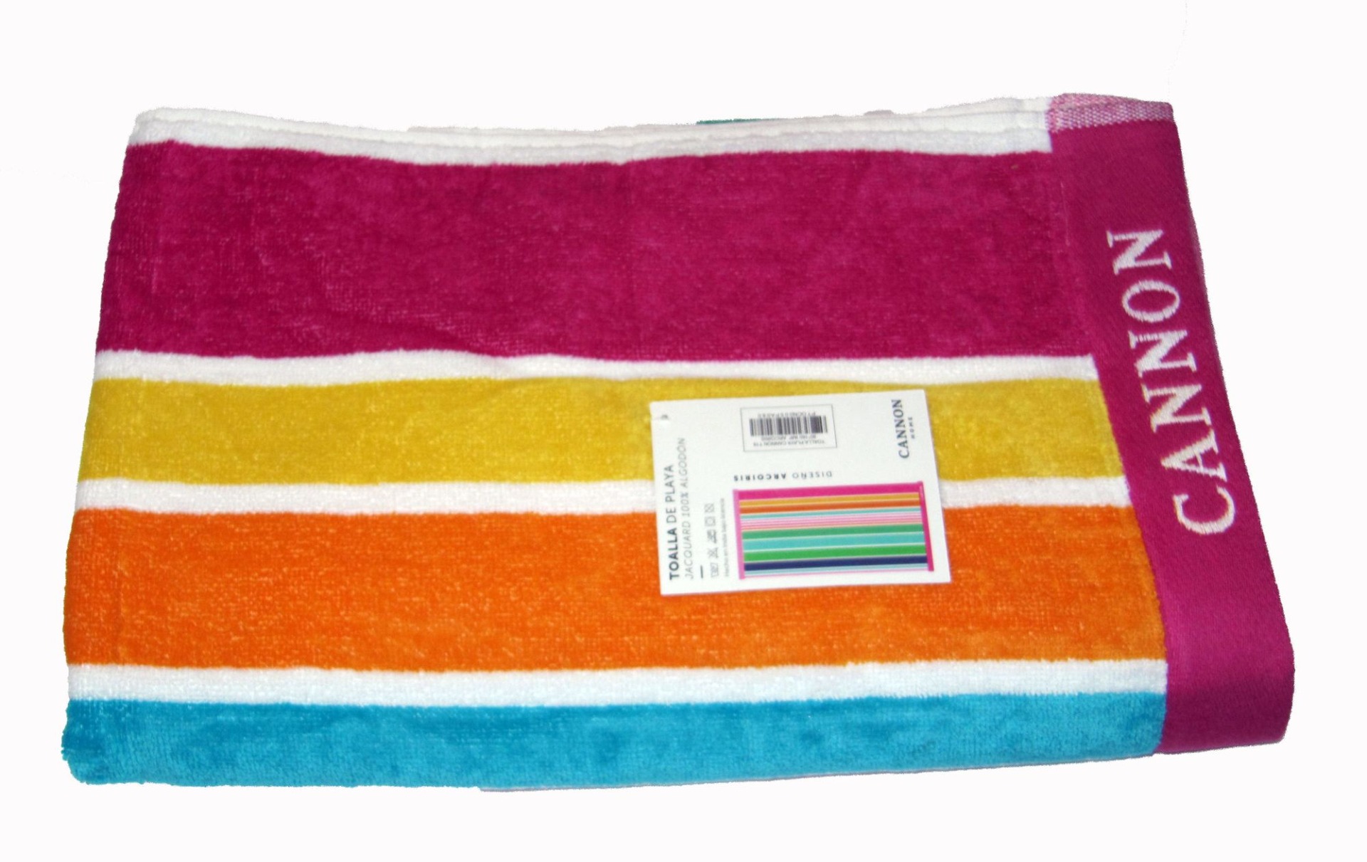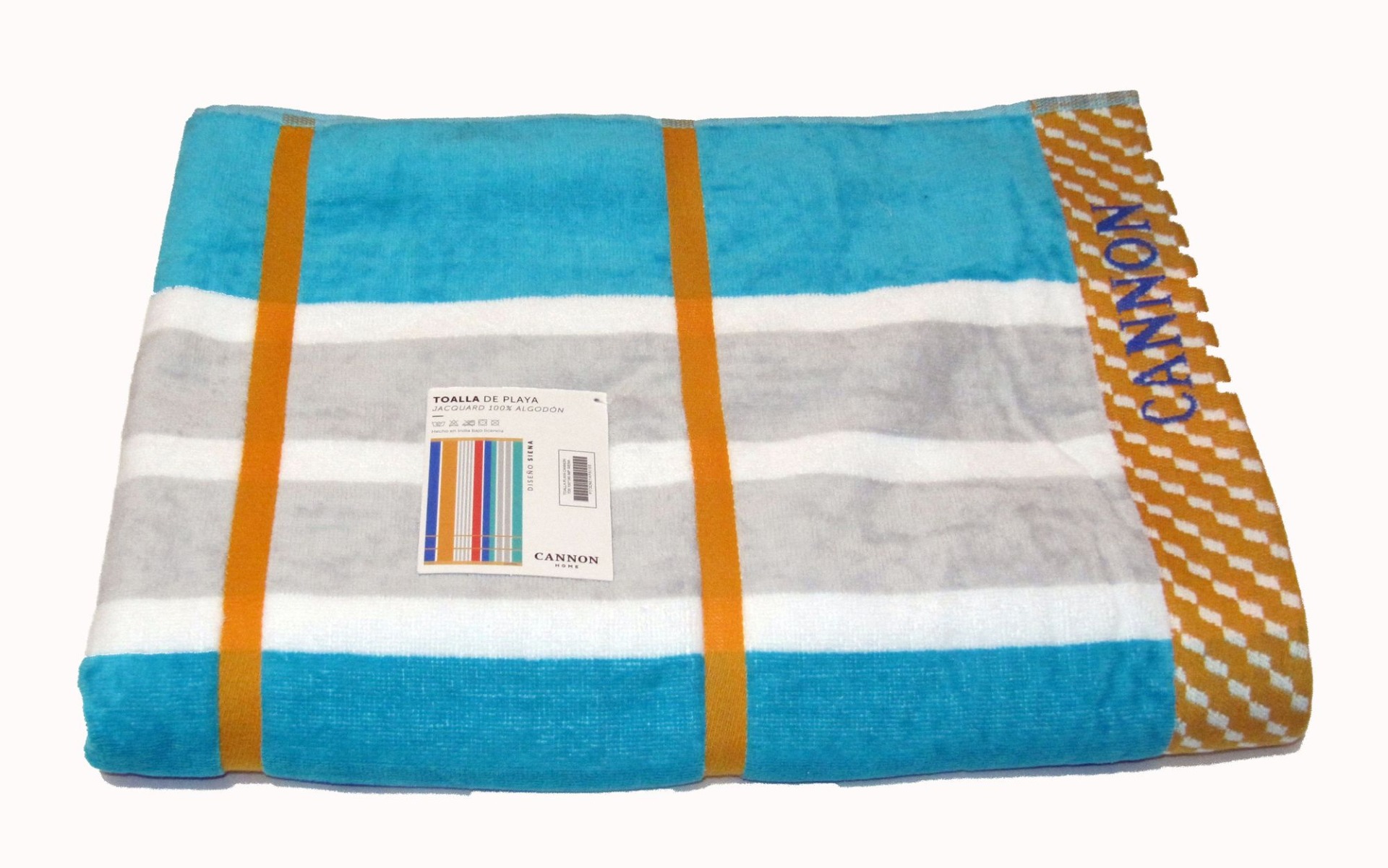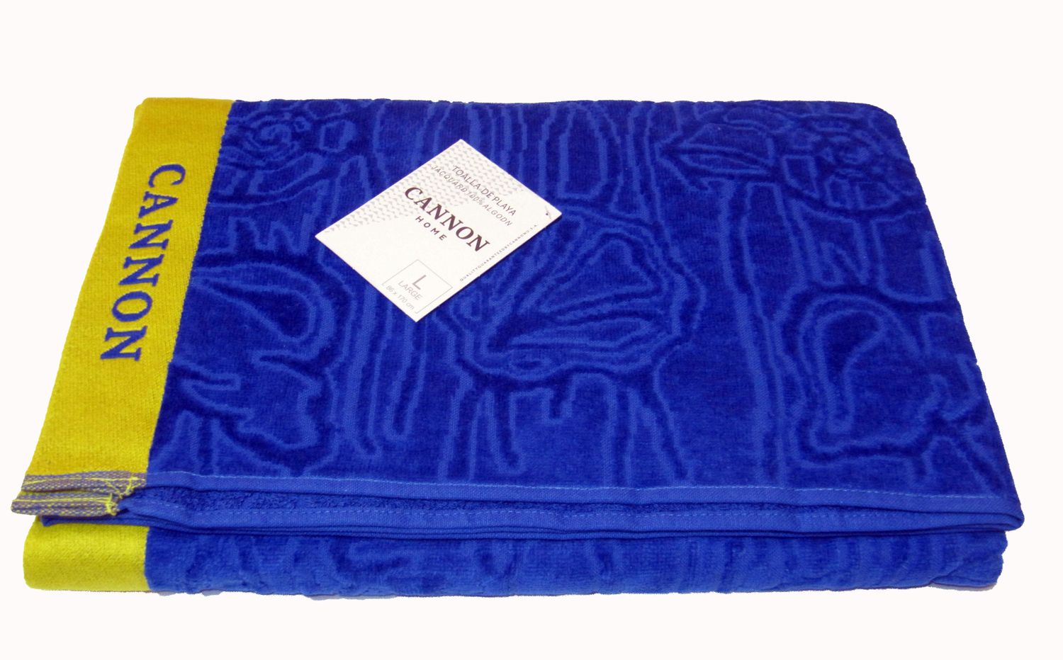 Toalla de playa de la marca Cannon. Modelo Jacquard, en 100% algodón, varios diseños, en el tamaño L, con las medidas de 100 x 180 cm.