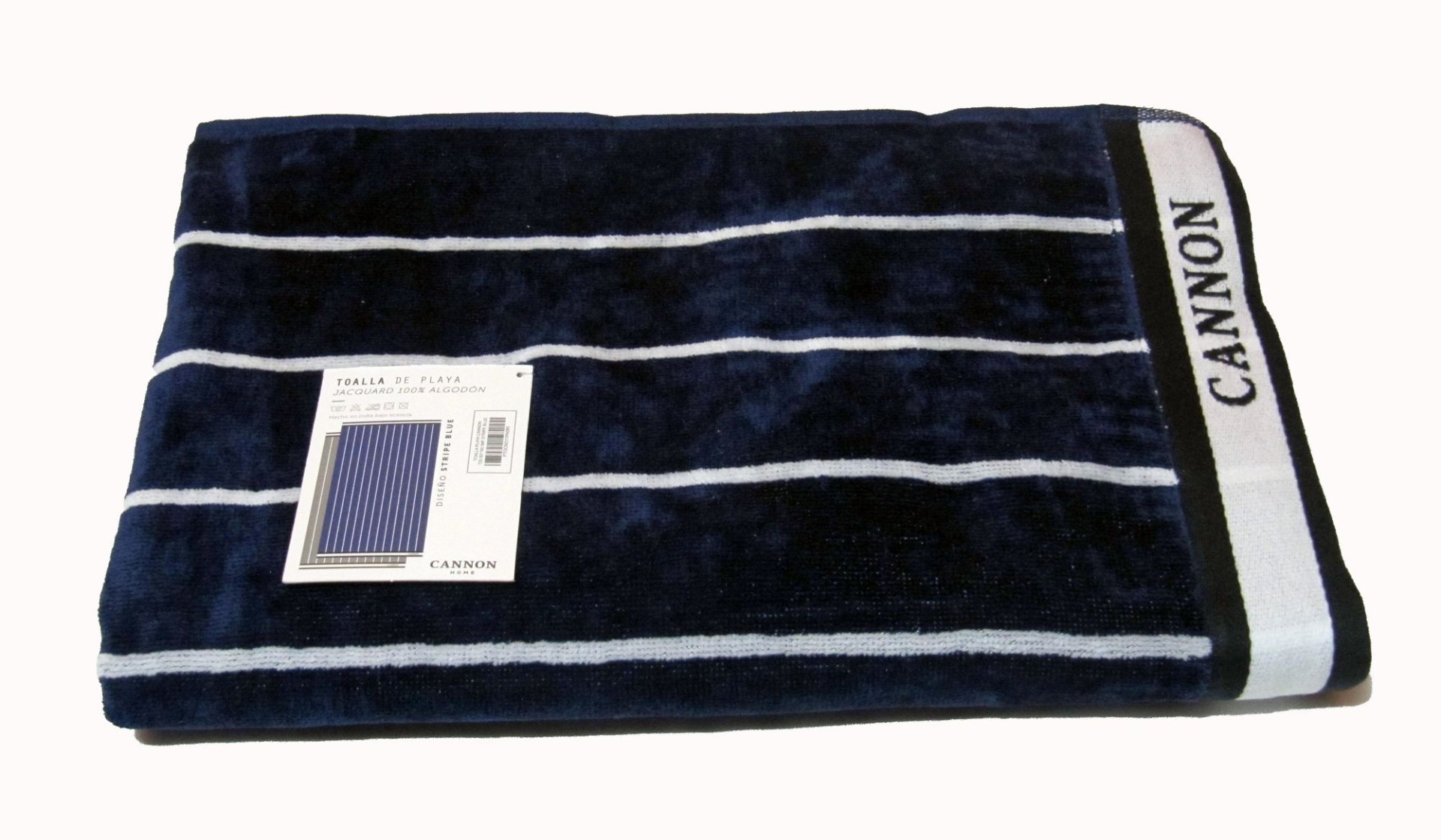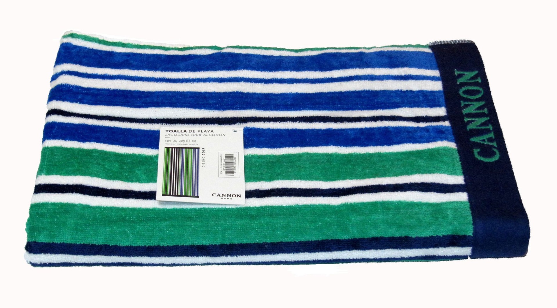 Toalla de playa de la marca Cannon. Modelo Jacquard, en 100% algodón, diseño Lineal, en el tamaño L, con las medidas de 100 x 180 cm.